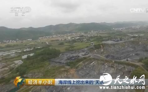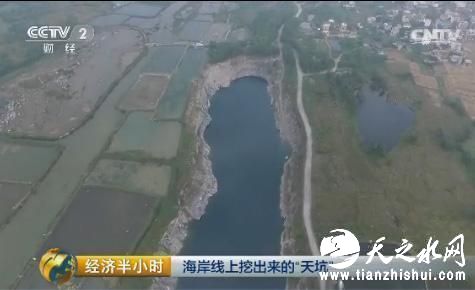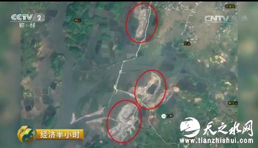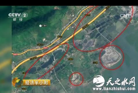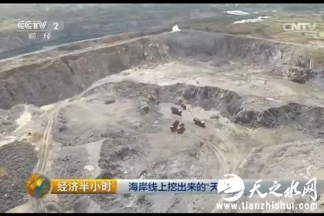 在闸口镇的福禄村,紧邻高速公路的路基不远处,3个连成一片的矿坑出现在了记者的画面中,而远处一个更大的矿坑已经深入到大海中。