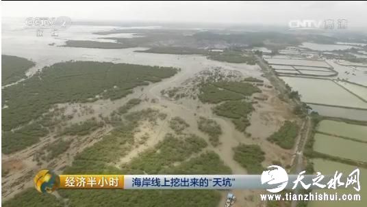 央视财经《经济半小时》记者了解到,北海合浦县一带的地质条件属于典型的喀斯特地貌,看似平整的地下其实遍布着大大小小的溶洞,而且在地下分布着很多石缝。每当采石场放炮的时候,就会把这些溶洞、石缝震得更大,百姓在海滩上养虾的水塘就很容易出现漏洞。村民们带记者到采石场旁边的一个虾塘,记者看到,这个虾塘的漏洞至少有十几个。