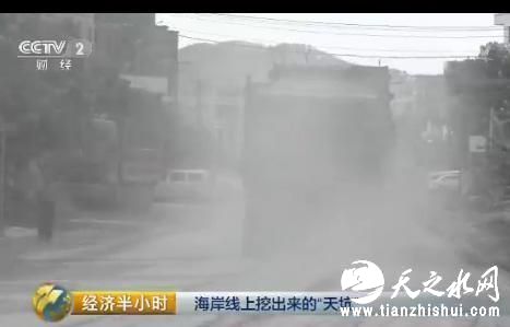 记者在采石场的现场看到,拉运石料的大车来来往往,不仅是采石的坑在破坏环境,采石也给当地带来了严重的粉尘污染。在合浦县闸口镇的主街道上,道路被压的坑坑洼洼,拉石料的大车一过,扬起大量尘土。