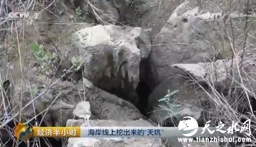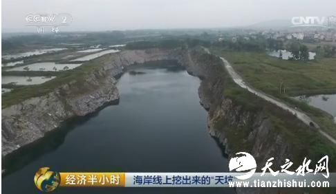 采挖石头形成了一个几十米深的大坑,现在石场停工之后,海水流进矿坑形成了一个巨大水塘,而矿坑周围却没有什么有效的安全措施。