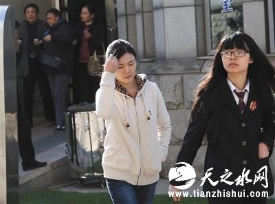 2013年11月7日下午,取保候审的罗菲(左)在法院工作人员带领下走进北京市第二中级法院受审。资料图片/新京报记者王贵彬摄