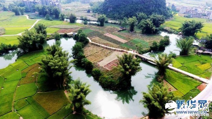 一湾碧水环绕东兰县武篆镇江平村的田野。(记者 高东风 摄)