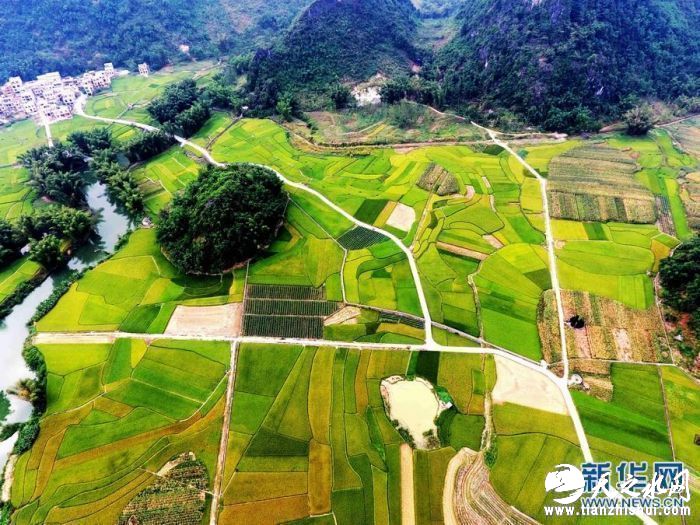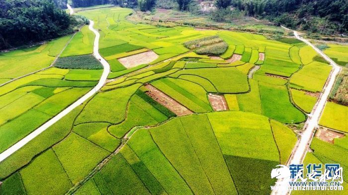 10月13日,东兰县武篆镇江平村的田野上一片金黄。(记者 高东风 摄)
