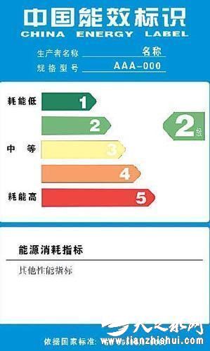 通常我们知道的能效标识为背部有粘性的,顶部标有“中国能效标识”(CHINA ENERGY LABEL)字样的彩色标签,一般粘贴在产品的正面面板上。能效标识制度从2005年就开始执行,信息内容通常包括产品的生产者、型号、能源效率等级、依据的国家标准号等。1级为最节能产品。