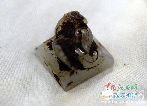 出土之初,玉印被淤泥包裹,印钮难辨真容,有专家根据造型初步判断为蟾钮,后经仔细清理,印钮形态显露出禽鸟特征,又有专家认为是凤钮。近日,经专家考证,该玉印造型匐身回首,短尾疏翅,瞠目钩喙,眉耳毕现,为“鸱(chi)鸮(xiao)”的造型,也就是我们平时所说的猫头鹰。这只“鸱鸮”工艺精娴、生动鲜活、殊为奇特,在此前我国的汉代考古中从未发现过。