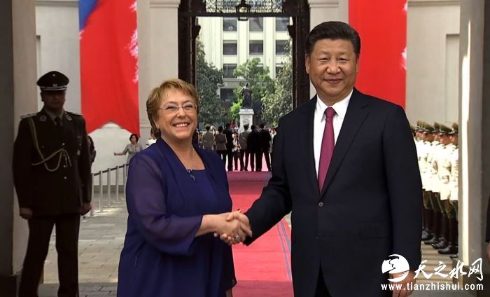 当地时间11月22日16:30习近平出席智利总统巴切莱特举行的欢迎仪式