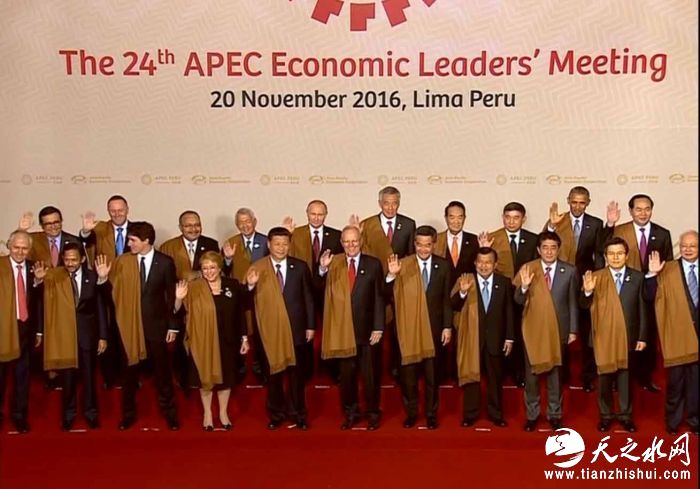 APEC峰会领导人身披秘鲁特色披肩集体拍摄“全家福”