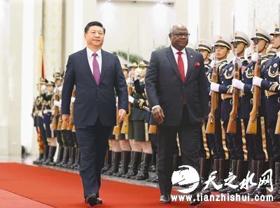 会谈前,习近平在人民大会堂北大厅为科罗马举行欢迎仪式。全国人大常委会副委员长艾力更·依明巴海、国务委员杨洁篪、全国政协副主席李海峰等出席。