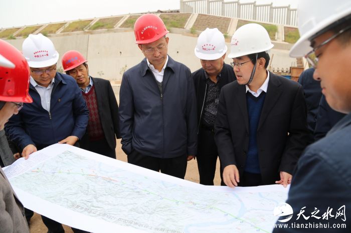 在调研现场,王继红、庄纪栋分别汇报工程情况,截止到11月30日,桥梁完成22714成桥米,完成设计的77%;隧道累计完成4299成洞米,完成设计的70%,16座隧道已贯通6座,预计在元月底还要贯通5座隧道;预制箱梁244孔,完成设计的30%,架设箱梁147孔,完成设计的16%;路基土石方完成563万立方米,完成设计的81%;预制轨道板累计完成7271块,完成设计的23%。