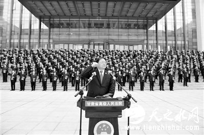 中国甘肃网12月3日讯据兰州晨报报道(通讯员潘静虎文心记者董子彪)在“12·4”国家宪法日来临之际,12月2日下午,省高级人民法院党组书记、院长梁明远带领省法院全体干警,各中院、基层院院长面向国旗、面对国徽、手持宪法,向全社会和广大人民群众作出庄严承诺。