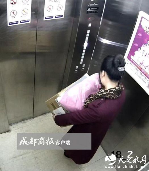电梯监控拍下她拿走包裹的过程