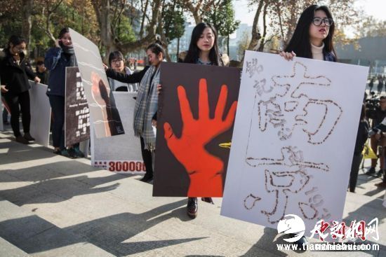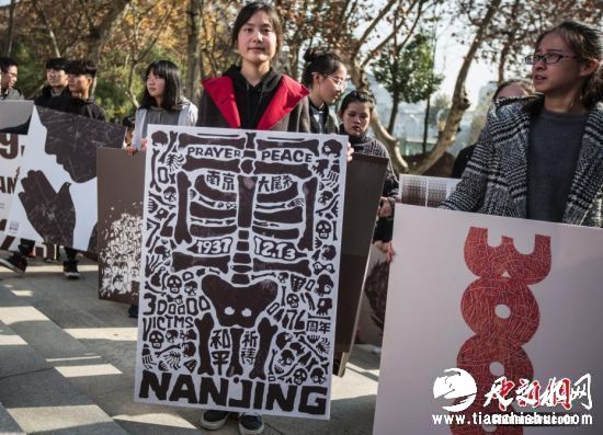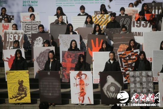 12月5日,南京艺术学院的大学生展示国家公祭日主题海报作品。当日,2017南京国际和平海报双年展启动仪式在南京艺术学院举行,现场开展国家公祭日优秀海报高校巡展、朗诵主题诗歌、放飞和平鸽等活动,在12月13日国家公祭日来临之际,用艺术的形式揭露日本侵略者的战争罪行、悼念南京大屠杀死难者,不忘国耻铭记历史。中新社记者泱波摄