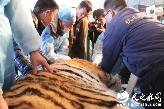 在栾川伏牛山东北虎园,一只东北虎出现进食不佳,精神不好,体温上升,经有着多年饲养经验的虎园饲养部刘部长观察判断,这是东北虎胃部出现了问题。经县领导和虎园领导协调安排,11月30日下午,栾川县潭头镇中心医院工作人员在郑植副院长和李冰魁医师的带领下第一时间赶往虎园对此只老虎进行检查诊治,最终确诊是胃部异物嵌入胃壁,需要尽快取出。