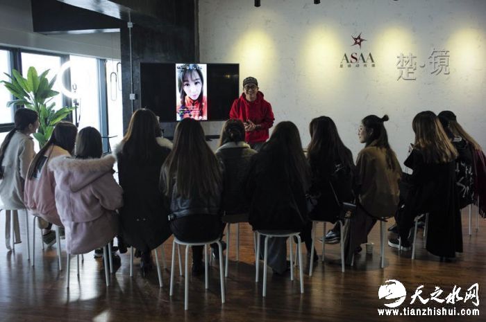 图为“工厂”在对员工进行妆容培训。对于通过手机屏幕与自己交流的粉丝来说,主播的妆容、第一印象,很大程度上决定了他们是否会真正留在直播间内,能否在后期对主播进行打赏。洋气的、有个性的妆容,对于主播门来说,是必学课程。
