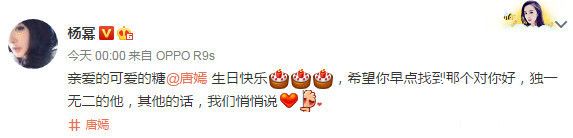 此前,曾有传闻唐嫣走红后,杨幂、唐嫣姐妹失和,杨幂此番送祝福,实力破除传闻。