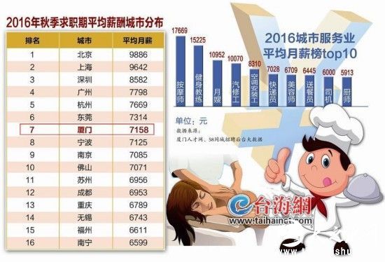 厦门人均月薪7158元!你没看错,昨日,一份《2016年秋季求职期平均薪酬城市分布表》发布,厦门位居全国第七。