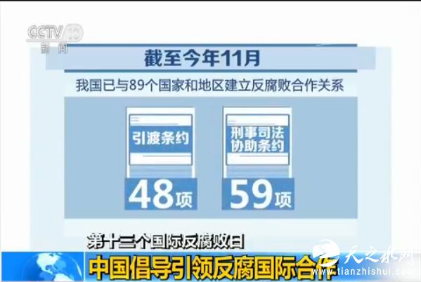 在双边合作方面,截至今年11月,我国已与89个国家和地区建立反腐败合作关系,对外缔结48项引渡条约和59项刑事司法协助条约。其中,今年新签署刑事司法协助条约和引渡条约12项,签署和续签6个双边反腐败合作谅解备忘录。