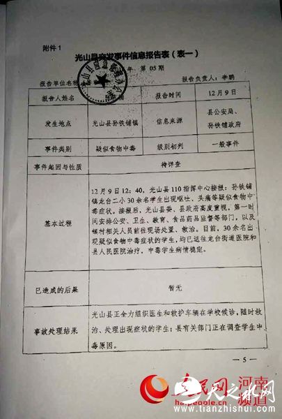 值得关注的是,就在事发前两天,12月7日下午,光山县教育局联合县食药监局等部门在紫水学校会议室召开了全县中小学校校园安全管理人员培训会。全县中小学校(含幼儿园、托幼机构)的食品安全管理人员总计260多人参加了培训会。