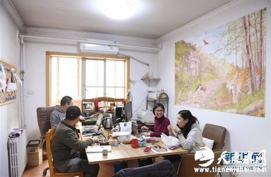猫盟成员武展昭、黄巧雯、万绍平和宋大昭(从右至左)在北京猫盟办公室交流(11月29日摄)。新华社记者陶希夷摄