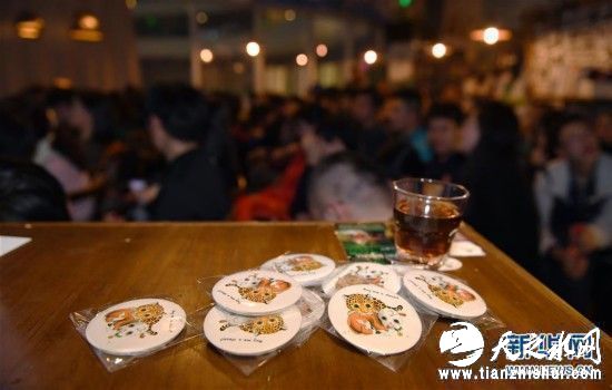 在北京某咖啡馆举行的讲座中,猫盟的周边产品作为问答环节的小奖品被摆在一旁。这些猫科动物主题的周边产品是猫盟保护工作的又一个创意之举,深受学生、白领的喜爱(12月3日摄)。新华社记者陶希夷摄
