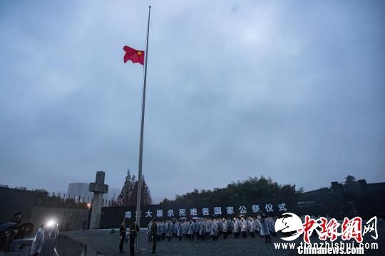 中新网南京12月13日电(记者朱晓颖)12月13日晨,7时整。初冬晨曦,天刚蒙蒙亮,清冽空气带着寒意,天空下起小雨。在南京大屠杀死难者国家公祭仪式举办地——侵华日军南京大屠杀遇难同胞纪念馆内,举行升国旗和下半旗仪式。
