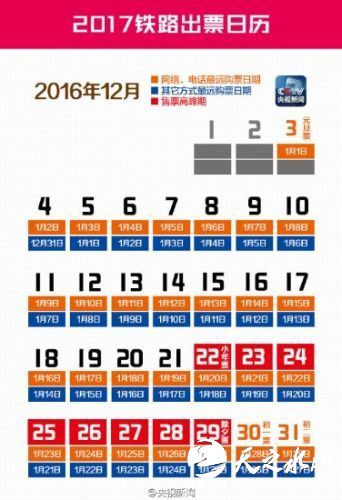 按30天预售期来推算,最激烈的抢票日期将出现在2016年12月23日和27日。