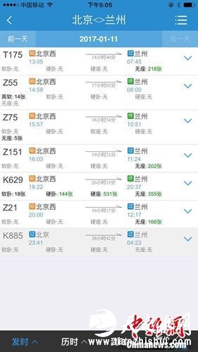 中新网(微信公众号:cns2012)记者2016年12月13日傍晚登陆12306网站发现,1月11日及其前几天,北京-兰州的火车票,目前已所剩无几。