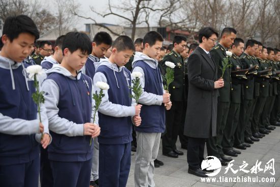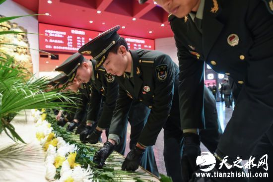 上午10时许,悼念仪式开始,抗战亲属、官兵、学生等近千人高唱国歌,默哀一分钟,并依次走进抗战馆序厅向遇难同胞敬献鲜花。随后各界代表参观了《一名日本侵华士兵镜头下的侵华战争》图片展。