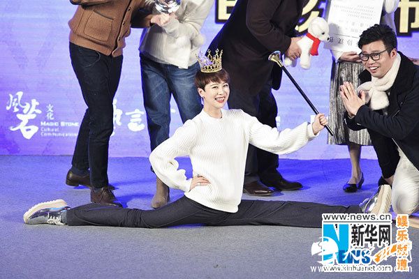 据悉,《麻烦家族》翻拍自日本国宝级导演山田洋次的作品《家族之苦》,讲述一个普通大家庭温馨而搞笑故事。作为恩师黄磊的电影导演处女作,爱徒海清自然也是全力支持。此番海清在影片中饰演长女文静,摇身一变和黄磊成了兄妹关系。而本次发布会现场的演员出场环节也是别出心裁,所有角色都以个性造型走起了“麻烦版”维密大秀。海清以女王造型登场,皇冠权杖十分抢眼,不禁让人猜到这个角色的作风也是十分强悍。拍照环节海清更是一字马造型亮相,大秀劈叉功底,“两米八”大长腿十分抢镜。