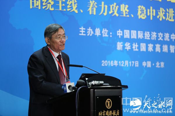 在2016—2017中国经济年会上,中国国际经济交流中心副理事长朱之鑫发表演讲。孙宇摄
