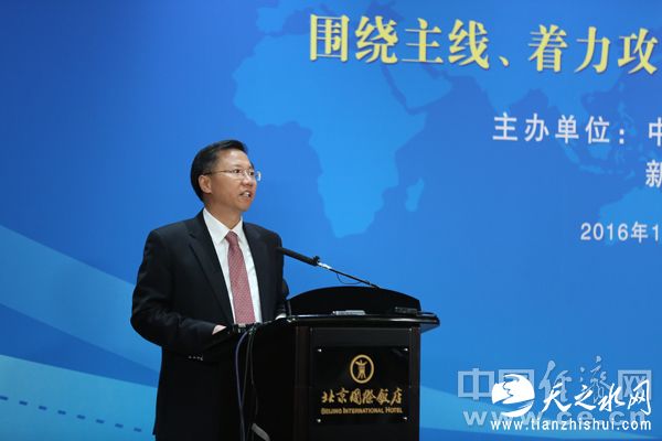 在2016—2017中国经济年会上,商务部部长助理张骥发表演讲。孙宇摄