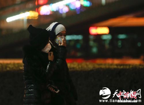 12月16日,北京民众戴防雾霾口罩出行。中新社记者杜洋摄