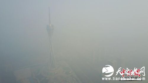12月18日,河南郑州仍是雾霾围城,图为隐身于雾霾之中的河南广播电视发射塔。王中举摄