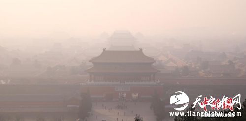 12月18日,雾霾中的紫禁城。中新社记者韩海丹摄讯