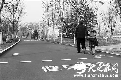中国甘肃网12月21日讯 据西部商报报道 (记者 张云 强江波 )记者获悉,经过近两个月的施工,全长近2000米的雁滩公园环湖健身步道近日新妆亮相,提升改造后的健身步道颜色鲜亮、路面增加了运动标识图案。