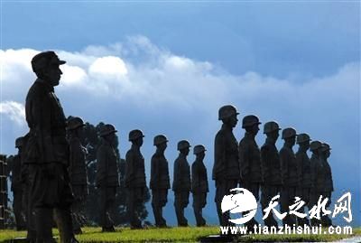 新京报讯2013年9月3日,广州美术家李春华将一组中国远征军雕塑群,无偿捐献给云南省龙陵县,后者被整体安置在龙陵“松山抗战”遗址上。2014年初,当地政府在雕塑群上首山坡处,修建起一座“松山抗战纪念碑”。