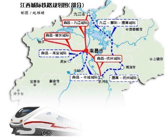 “三射”:规划南昌-进贤-抚州城际、南昌-丰城城际、南昌-高安城际,增强省会南昌对周边城镇组团的向心作用。