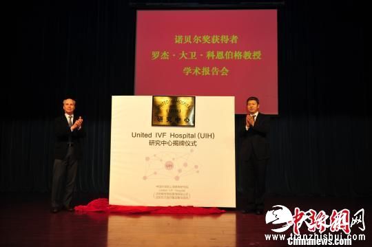 报告会前,东北大学校长赵继致欢迎辞,冯守权和罗杰·大卫·科恩伯格共同为UniteIVFHospital(体外受精联合胚胎移植技术研究中心,简称UIH)揭牌。