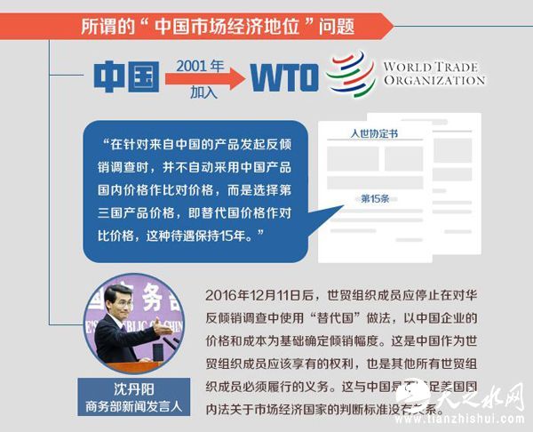 根据中国加入世贸组织议定书第15条规定,世贸组织成员对华反倾销“替代国”做法于12月11日终止。但现在有人反悔了,不认账了。国际协定中,有一个亘古不变的规矩,就是言必信、行必果。这是当时大家的约定,现在该兑现了。