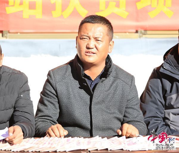 次多老人提到的老板就是伟色,黝黑的皮肤,羊八井镇早期致富带头人。总投资1500万元的混凝搅拌站项目,政府给他出资400万元。就是这个项目给羊八井镇180户737人分红25.5万元。其实,伟色2003年就开始扶贫,从开始的20户,每户人家一年扶持500元,连续13年拿出150多万元资助贫困户,目前已经有350户贫困户受益,今年一共慰问150户,标准金每年3000元。为此,他还向当雄县党委书记立下军令状,以今年的3000元为底数,未来7年每年递增500元。