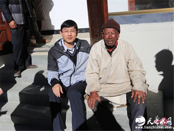 记者和贫困户嘎玛次仁(右)
