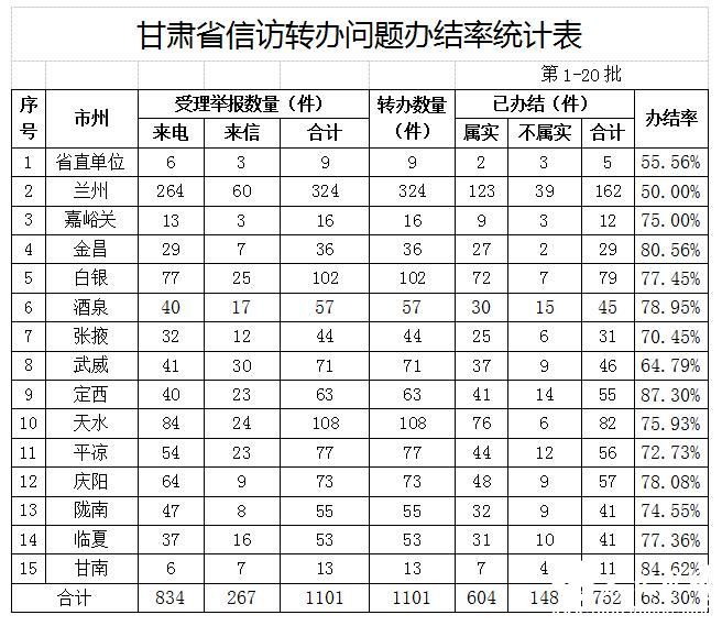 现将全省各地转办数量、办结数量、办结率公布如下。