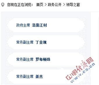 中国经济网拉萨12月23日综合报道西藏自治区政府网站“领导之窗”栏目近日进行更新,据最新名单显示,罗布顿珠已任西藏自治区政府常务副主席。