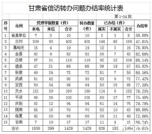 现将全省各地转办数量、办结数量、办结率公布如下。