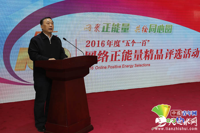 任贤良在讲话中指出,“五个一百”评选活动是网络新闻舆论工作的一件大事,也是盘点一年来网络正能量成果的一件喜事,要树立一批有影响力的榜样,展示一批有影响力的作品,激发出更多爱党爱国、向善向上的精神力量。