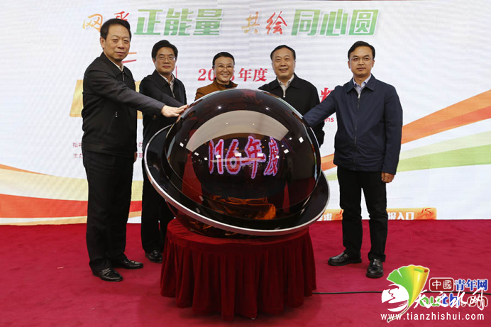 出席仪式的领导共同启动2016年度“五个一百”网络正能量精品评选活动。 中国青年网记者 李拓 摄