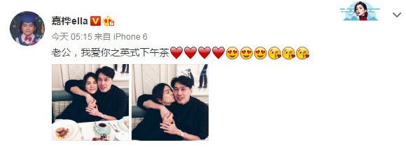 腾讯娱乐讯 今日(12月29日)一大早,Ella就发微博秀恩爱,她晒出两张与老公喝下午茶的照片,一张被老公揽在怀里,小女人味儿十足,另一张Ella主动献吻老公,小两口幸福甜蜜。