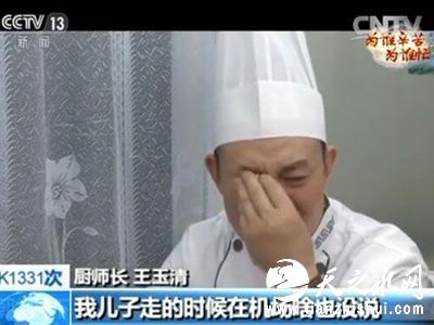 厨师长王玉清:心里愧疚得不行,曾经我离开我家的时候。我父母,每次我一上车,老远一直到看不见我为止。临走的那一瞬间,他说,儿子你什么时候再回来?我都没办法说什么时候再回去看你们去。我儿子走的时候在机场啥也没说。拧过头,目光对视了几十秒钟,眼泪都在……