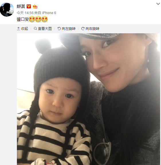 腾讯娱乐讯 1月8日下午,舒淇在微博晒出与张震女儿张源原(小源宝)的合影,并写道:“酱口爱。”照片中,舒淇微笑面对镜头,一旁的小源宝却表情严肃,十分可爱。