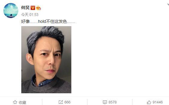 腾讯娱乐讯 (文/JAV)今日凌晨,何炅在微博晒出最新发型和发色,照片中何炅蹬着眼镜撇着嘴,头发颜色是流行的“奶奶灰”。但何老师表示:“好像……hold不住这发色……”